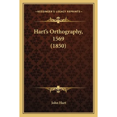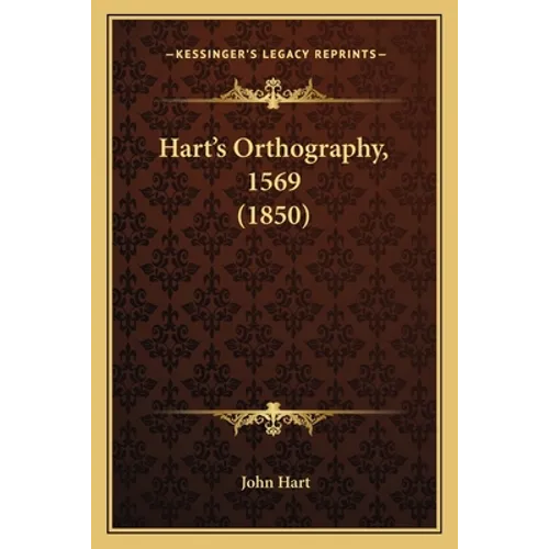 Hart's Orthography is a book originally published in 1569 by John Hart, which was reprinted in 1850. It is a guide to English spelling and pronunciation, intended to help readers improve their reading and writing skills. The book includes rules for spelling and pronunciation, as well as examples of how to apply these rules in practice. It also features a glossary of difficult words and their correct spellings. The book is significant because it was one of the earliest attempts to standardize English spelling, and it influenced later efforts to create a more consistent and uniform spelling system. Overall, Hart's Orthography is a valuable resource for anyone interested in the history of English language and its development over time.This scarce antiquarian book is a facsimile reprint of the old original and may contain some imperfections such as library marks and notations. Because we believe this work is culturally important, we have made it available as part of our commitment for protecting, preserving, and promoting the world's literature in affordable, high quality, modern editions, that are true to their original work.