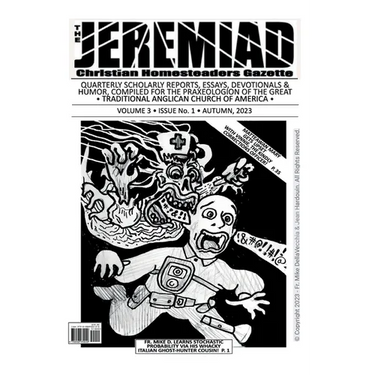 Edited and co-authored by the Clergy, the Episcopate, and many of the smart-alecks of the Continuing-Anglican Tradition, the Jeremiad Christian Homesteaders Gazette offers readers an "off-grid" view of the Way before us This is a journal written in the "upper room" of every lodging, which you can read on your front porch as the traffic roars by, knowing that the Father, who expresses some of His greatness in the stars above really does have a hand in the works that are wrought before the hopeful eyes of the Faithful. You never know what you are going to read inside the Jeremiad, but the subjects have very little that owe themselves to the electronics, the fake science and fake news, and the scurrilous flim-flam jibber-jabber of today's mountebank world. Everything from scholarly articles to ghost stories fill these covers. This is a quarterly publication that is intended to comfort the hearts of all believers, as well as those whom we feel ought to become true believers! Why not see what we're writing and may the Son bless you and yours! - Fr. Mike DellaVecchia, Saint Patrick's Anglican Church of Traditional Anglican Church of America