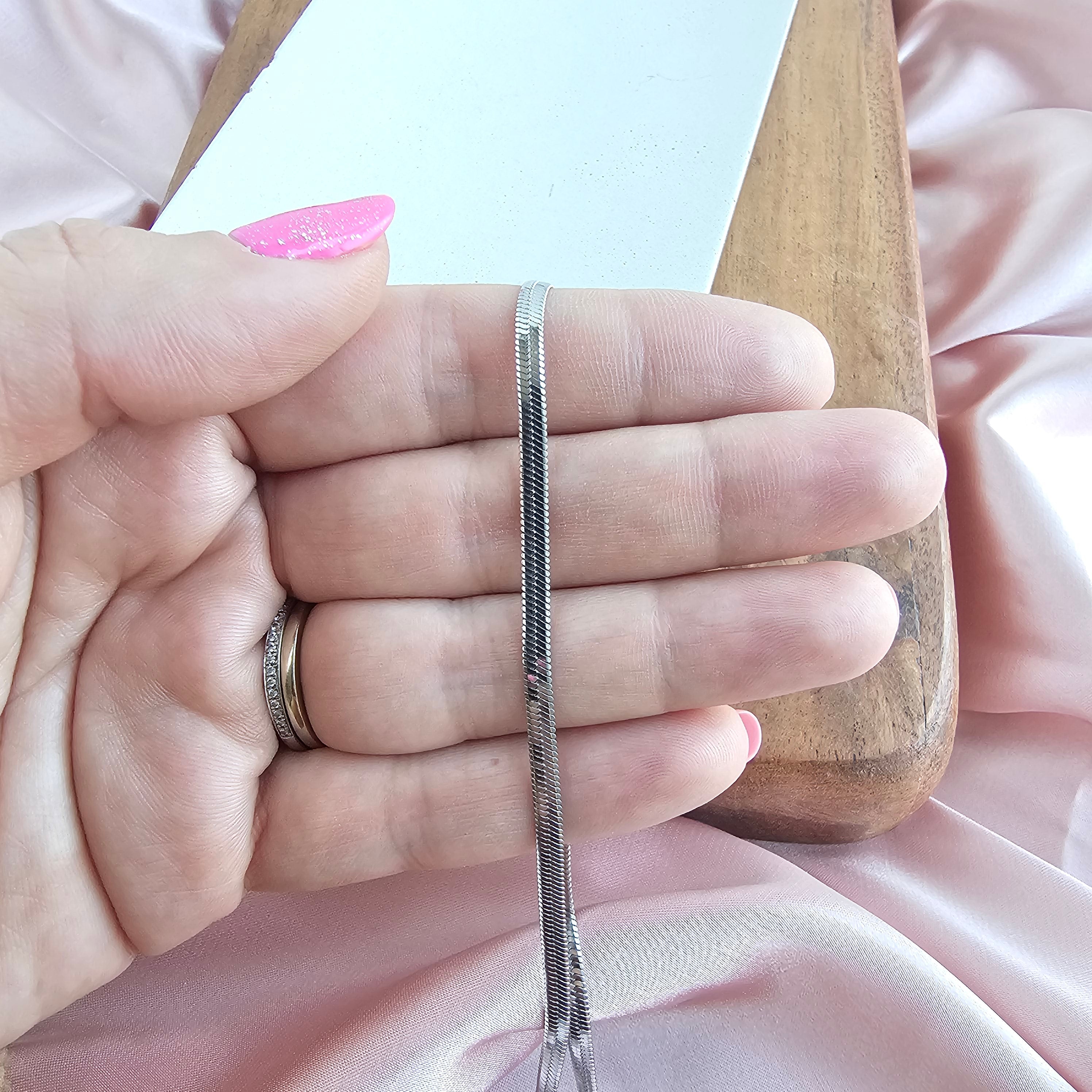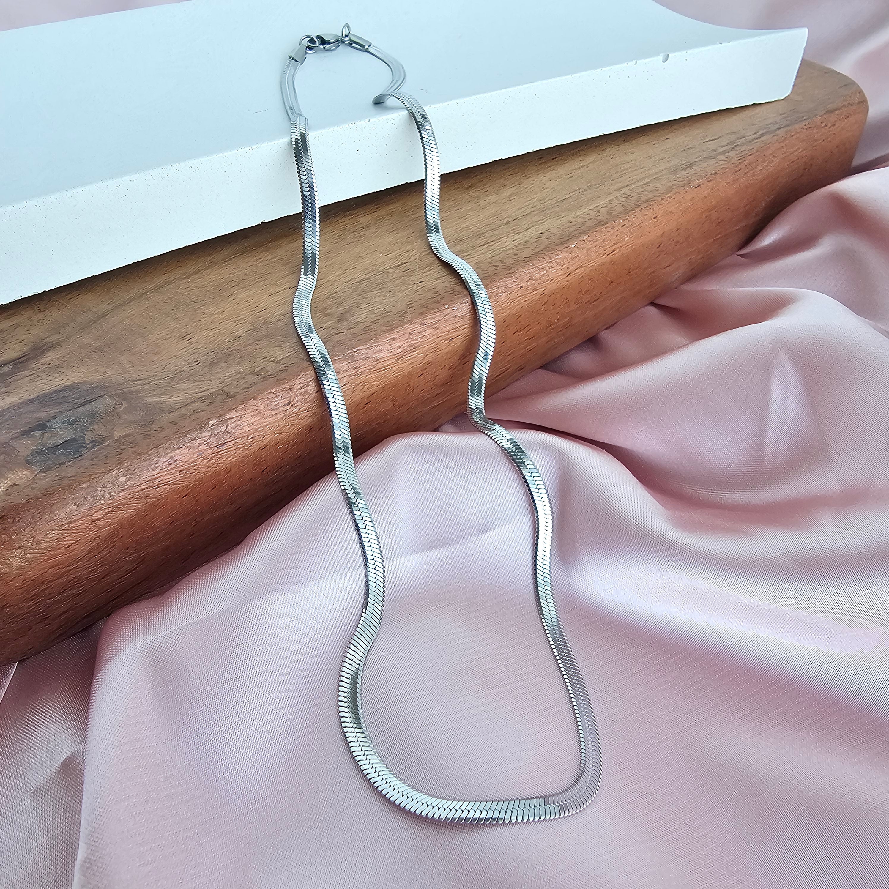 Introducing our all-new Luxe Silver Delicate Herringbone Chain – your stylish sidekick for every occasion! Whether you're rocking your favorite jeans and tee combo or glamming up for a night out, this chain has got your back. Versatility is the name of the game here. Whether you're a fan of minimalism or love a layered look, this necklace is your ultimate styling canvas.