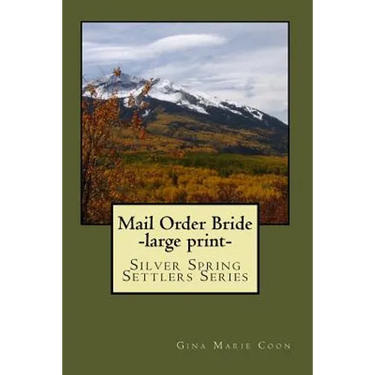 This is the LARGE PRINT version of Mail Order Bride. At the age of twenty-eight, Sarah Marshall is on the shelf, dreams of a husband and children of her own set aside long ago. Family obligations came first - always. But, when her impulsive younger sister finds herself in a family way, Sarah is forced to seek marriage to a stranger. How could she know that the dangerous journey to marry one man would land her square in the path of another? Or that her future husband is not all he appears to be? Haunted by his war years, former Confederate soldier Tom Cooper is summoned home after more than a decade away. He intends to settle his father's estate, then return to his bachelor life in Montana before winter sets in. On the return journey, he comes upon a horrific accident, and his plans take a temporary detour. A beautiful, injured woman, her pregnant sister, and a wounded cowboy desperately need his assistance. Later, a chance meeting leaves him questioning the security of the two women. Can he protect Sarah and her sister without losing his heart along the way? Or his life? Will Sarah and Eliza Marshall find love and a fresh start in the rugged west? Or will the malicious plans of one man claim their freedom, and perhaps their very lives? Mail Order Bride, a full-length novel, is the third book in the Silver Springs Settlers Series. Other books include Building Fences, Mending Hearts, first in the series, and The Right Choice, volume two. Though the characters overlap, the books need not be read in order.