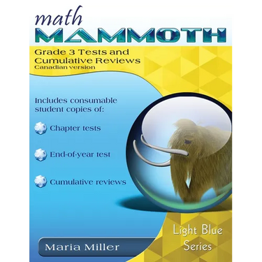 Math Mammoth Grade 3 Tests and Cumulative Reviews (Canadian Version) contains the chapter tests, end-of-year test, and cumulative revision worksheets for Math Mammoth grade 3 curriculum. It does not contain answers; the answer key book may be purchased separately at Lulu.