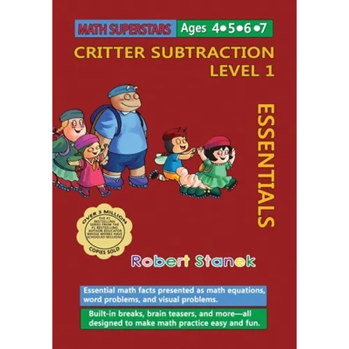 The book focuses on subtraction facts for subtracting the numbers 1 to 3 from whole numbers up to 12, and also helps your child develop an understanding of many other related concepts. Combine with Critter Subtraction Essentials Levels 2 and 3 to cover all the math facts for subtracting the numbers 0 through 12 from whole numbers up to 12.