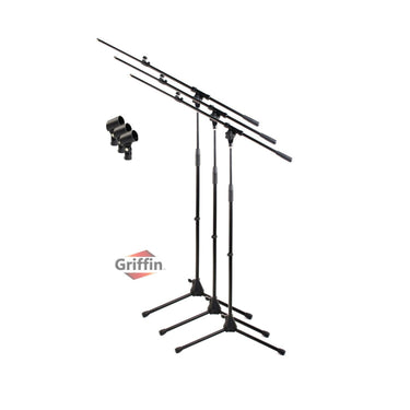 Microphone Stand with Telescopic Boom Arm (Pack of 3) by GRIFFIN - Adjustable Holder Mount For Studio Recording Accessories, Singing Vocal Karaoke by GeekStands.com