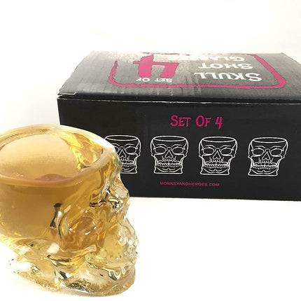 Monkey and Heroes Extra Large Skull Shot Glasses Set of 4, Use Skull Head Cup For A Whiskey, Scoth and Vodka Shot Glass, 3 Ounces by The Wine Savant