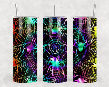 Neon Spider Webs - 20 oz Steel Skinny Tumbler - Optional Blue Tooth Speaker - Speaker Color will Vary by Rowdy Ridge Co