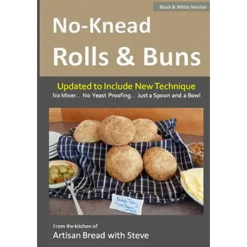 Bread is an important part of the meal... it starts the dining experience. Good rolls... good restaurant. Great rolls... great restaurant. Likewise, fresh from the oven dinner rolls can elevate your evening meals. And... this cookbook has been updated to include the new technique as demonstrated in, "World's Easiest No-Knead Bread (Introducing "Hands-Free" Technique)".This is a specialty cookbook... it's an excerpt from "My No-Knead Bread Cookbook". It is intended for those who only want a portion (rolls & buns) at a lower cost. It is available in both ebook and paperback (color and B&W) to suite everyone's budget. And it has been updated to include new recipes and technique.This is the ideal bread cookbook for the newbie... the first timer... the future baker... because I will show you how to make bread in a glass bowl with a spoon... without dusting the counter with flour or touching the dough with your hands. It's called the "hands-free technique". It uses the principles of a bread machine... without the bread machine.There are three basic methods for making bread... -Knead by hand... the most common method.-Bread machine... very popular, but your loaf will have a silly little paddle in the bottom.-No-knead... a method in which Mother Nature does the kneading for you.This cookbook uses the "no-knead" method. The advantages are... -No kneading... Mother Nature does the kneading for you.-No yeast proofing... instant yeast doesn't require proofing.-No special equipment (no mixer, no bread machine)... entire process is done in a glass bowl with a spoon and spatula, and can be baked in a wide variety of baking vessels (bread pan, uncovered baker, skillet, preheated Dutch oven, etc.).-Only 4 ingredients (flour, salt, yeast and water)... to which other ingredients can be added to make a variety of specialty breads.There are two methods for making no-knead bread...-Traditional... proofs for 8 to 24 hours.-"Turbo"... ready to bake in 2-1/2 hours.This cookbook will start by teaching you how to make no-knead bread using the traditional method, then "Turbo" method, because the traditional method is more popular and a little easier.What makes this cookbook different from others is... -"Hands-free technique"... a new and innovative technique that uses the handle end of a plastic spoon to manipulate the dough (like a dough hook) after which the dough goes straight from the mixing bowl to the baking vessel (bread pan, etc.) without dusting the work surface with flour or touching the dough with your hands.-"Roll-to-coat"... an innovative technique that coats the dough ball with flour in the mixing bowl. No more sticky dough. When the dough comes out of the bowl it will be easy to handle if you wish to divide the dough into portion to make baguettes, rolls, etc.-"Poor man's Dutch oven"... new and innovative technique which combines the ease of baking in a bread pan with the principles of baking in a Dutch oven.Step by step, this cookbook will take you on a journey you will love and enjoy.Thanks - Steve