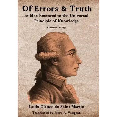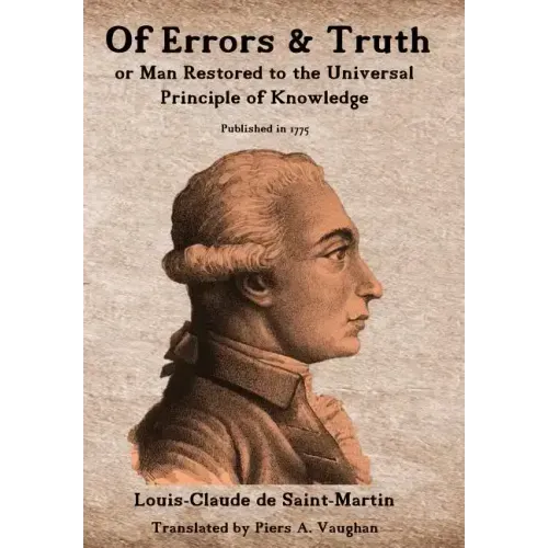 Of Errors & Of Truth, or Man Restored to the Universal Principle of Knowledge was published in Lyon in 1775, when Louis-Claude de Saint-Martin was 33 years old. Born in 1743 in Amboise, France, he studied Law for a short time before entering the army, serving as a commissioned officer at the Regiment stationed at Foix. There he met the enigmatic Martinez de Pasqually, and shortly thereafter he was initiated into his extraordinary theurgical Masonic group, called the Order of Elect Cohens of the Universe. He soon resigned his commission to become the Master's full-time secretary, eventually reaching the highest Grade in Pasqually's Order, that of R aux Croix.