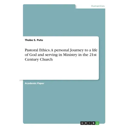 Academic Paper from the year 2020 in the subject Sociology - Religion, language: English, abstract: In this book I will reflect on this topic Pastoral ethics to help those who may want to enter in this Pastoral or Ministry vocation particularly in this century, to have an extra understanding of what is expected of them. Ethics as part of Pastoral Ministry, is personal and centred around the individual's relationship with God. It is based on understanding biblical commands, principles, and rules, personal values along with love, justice, peace, equality, fairness, respect for others, and relationship with the family, church, law, finance, employment and religious traditions. Pastoral Ethics has become an imperative topic in the life of the 21st century church. For many years it was generally expected that by virtue of been a Ministers of religion, it was granted that when a person who enters into ministerial vocation, such a person would be of a high moral standard and unquestionable ethics. However this is no longer the case. The church has never been so concern about how its leaders responds to the challenges of society, which are forever changing. The church is going through serious challenges of corruption, secularism, immorality and character issues. Pastoral ministry has become demanding with more added responsibilities, which includes not only preaching, evangelism, administration, and missions, but also counselling, social ministry, nurture and fund raising, among other responsibilities.