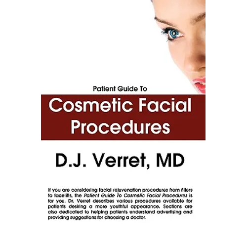 The Patient Guide to Cosmetic Facial Procedures aims to be a starting point for patients considering facial cosmetic procedures. With detailed discussions of both surgical and non-surgical options, facial plastic surgeon Dr. D.J. Verret provides an unbiased review of currently available products and surgical techniques for creating a more youthful appearance. Each section provides an explanation of a procedure and a starting point of questions to ask your physician when you decide to have a consultation. Web resources are provided so that additional patient research is only a click away. The book not only helps patients in understanding procedures but also provides tips for choosing a physician and suggestions to help wade through the myriad of advertising patients are bombarded with on a daily basis. The book is a must have for anyone considering facial rejuvenation.