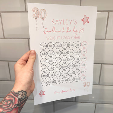 Personalised Name Countdown To Any Birthday Balloons A4 Weight Loss Diet Slimming Chart Tracker Print - st. lb Units - Laminated With Stars by WinsterCreations™ Official Store
