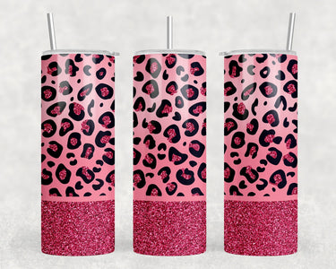 Pink Leopard Print - 20 oz Steel Skinny Tumbler - Optional Blue Tooth Speaker - Speaker Color will Vary by Rowdy Ridge Co