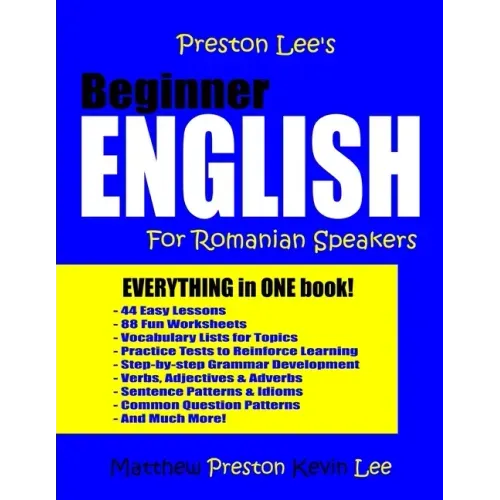 Preston Lee's Beginner English for Romanian Speakers is the absolute best way to learn English. Written by ESL specialists, Kevin Lee and Matthew Preston have taught English as a Second Language for over 20 years around the world.