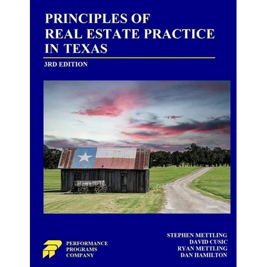 Performance Programs Company's Principles of Real Estate Practice in Texas contains the essentials of the national and Texas real estate law, principles, and practices necessary for basic competence as a real estate professional and as mandated by Texas license law for Principles I & II. It is based on our highly successful and popular national publication, Principles of Real Estate Practice, which is in use in real estate schools nationwide.