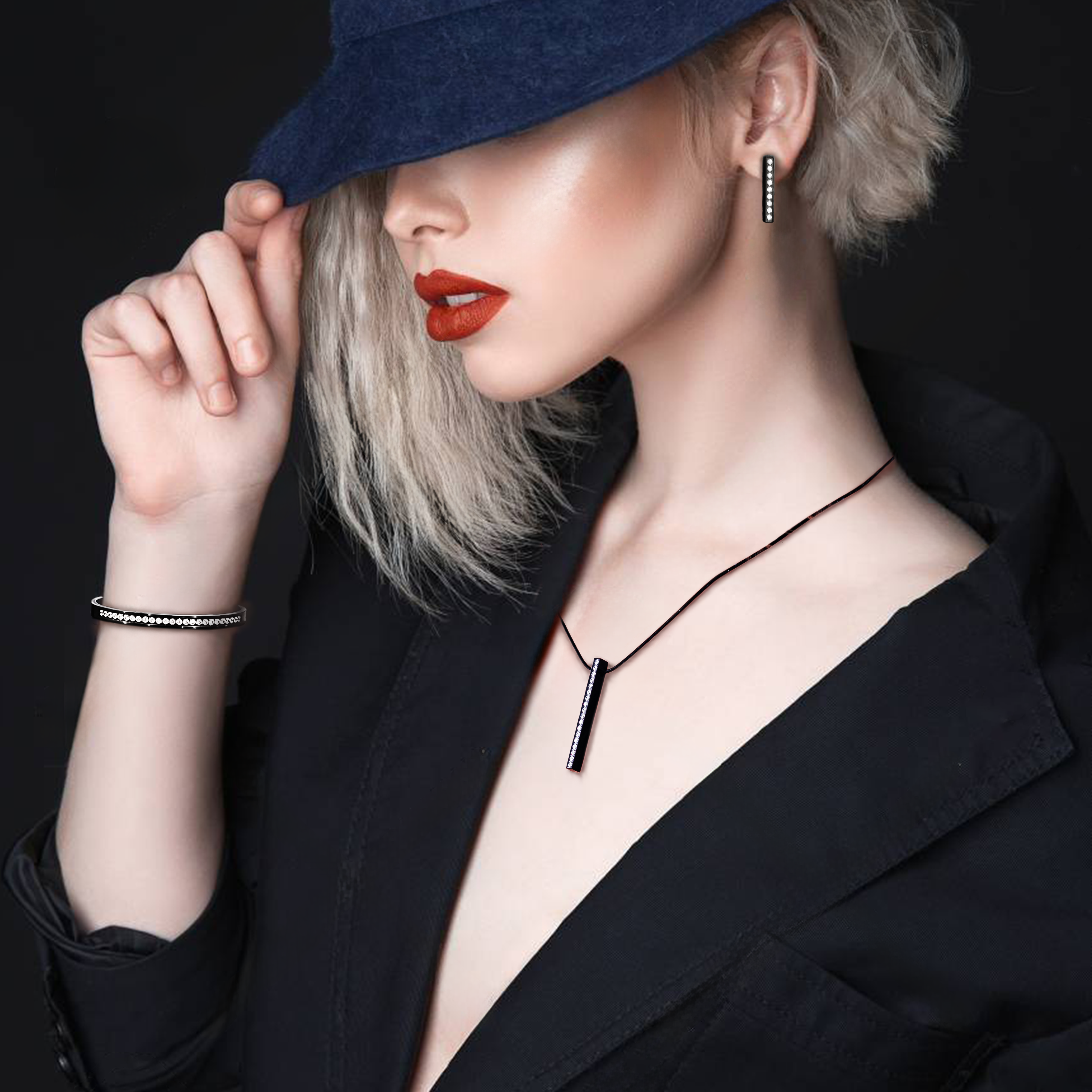 PT107B B.Tiff Black 18-Stone Bar Pendant by B.Tiff New York