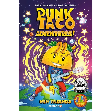 Punk Taco and his band of misfits, rock out across the universe, spreading peace and love through music, while helping those in need, making friends and always trying to do the right thing against impossible odds. For fans of InvestiGATORS and Hilda.