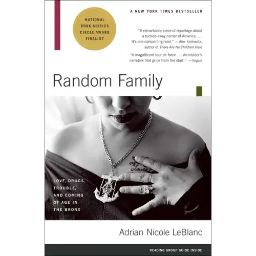 In her extraordinary bestseller, Adrian Nicole LeBlanc immerses readers in the intricacies of the ghetto, revealing the true sagas lurking behind the headlines of gangsta glamour, gold-drenched drug dealers, and street-corner society. Focusing on two romances--Jessica's dizzying infatuation with a hugely successful young heroin dealer, Boy George, and Coco's first love with Jessica's little brother, Cesar--Random Family is the story of young people trying to outrun their destinies. Jessica and Boy George ride the wild adventure between riches and ruin, while Coco and Cesar stick closer to the street, all four caught in a precarious dance between survival and death. Friends get murdered; the DEA and FBI investigate Boy George; Cesar becomes a fugitive; Jessica and Coco endure homelessness, betrayal, the heartbreaking separation of prison, and, throughout it all, the insidious damage of poverty. Charting the tumultuous cycle of the generations--as girls become mothers, boys become criminals, and hope struggles against deprivation--LeBlanc slips behind the cold statistics and sensationalism and comes back with a riveting, haunting, and true story.