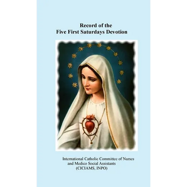 The Record of the Five First Saturdays Devotion provides a description of the Five First Saturdays Devotion and record booklet. On July 13, 1917 in Fatima, Portugal, The Blessed Virgin Mary appeared to Lucia dos Santos and Francisco and Jacinta Marto. She showed the children a vision of hell and stated, "You have seen hell where the souls of poor sinners go. To save them, God wishes to establish in the world a devotion to my Immaculate Heart. If what I say to you is done, many souls will be saved and there will be peace. The war is going to end; but if people do not cease offending God, a worse one will break out during the pontificate of Pius XI. When you see a night illumined by an unknown light, know that this is the great sign given to you by God that He is about to punish the world for its crimes by means of war, famine, and persecution of the Church and the Holy Father. To prevent this, I shall come to ask for the consecration of Russia to my Immaculate Heart and the Communion of Reparation on the First Saturdays. If my requests are heeded, Russia will be converted and there will be peace; if not, she will spread her errors throughout the world, causing wars and persecutions of the Church. The good will be martyred and the Holy Father will have much to suffer, and various nations will be annihilated. In the end, my Immaculate Heart will triumph. The Holy Father will consecrate Russia to me and she will be converted, and a period of peace will be granted to the world. In Portugal, the dogma of the Faith will always be preserved." Eight years later on December 10, 1925, at the Dorothean Convent in Pontevedra, Spain, the Blessed Virgin Mary accompanied by the child Jesus appeared to Sister Lucia to request the Devotion to her Immaculate Heart. Heart. On May 29th-30th, 1930, Our Lord explained that five Saturdays were due to the five kinds of offenses and blasphemies spoken against the Immaculate Heart of Mary. Our Lord ended this communication by telling Sister Lucia that it was His own mother who asked for these acts of reparation in order to move Him to "forgive those souls who have the misfortune of offending her." Those who commit such blasphemies against our Lady are in grave jeopardy of losing their souls, for these sins seriously offend God Himself. In spite of these terrible indignities, it is our Lady, as the Blessed Mother, even of those who offend her so grievously, who is concerned for their eternal salvation.