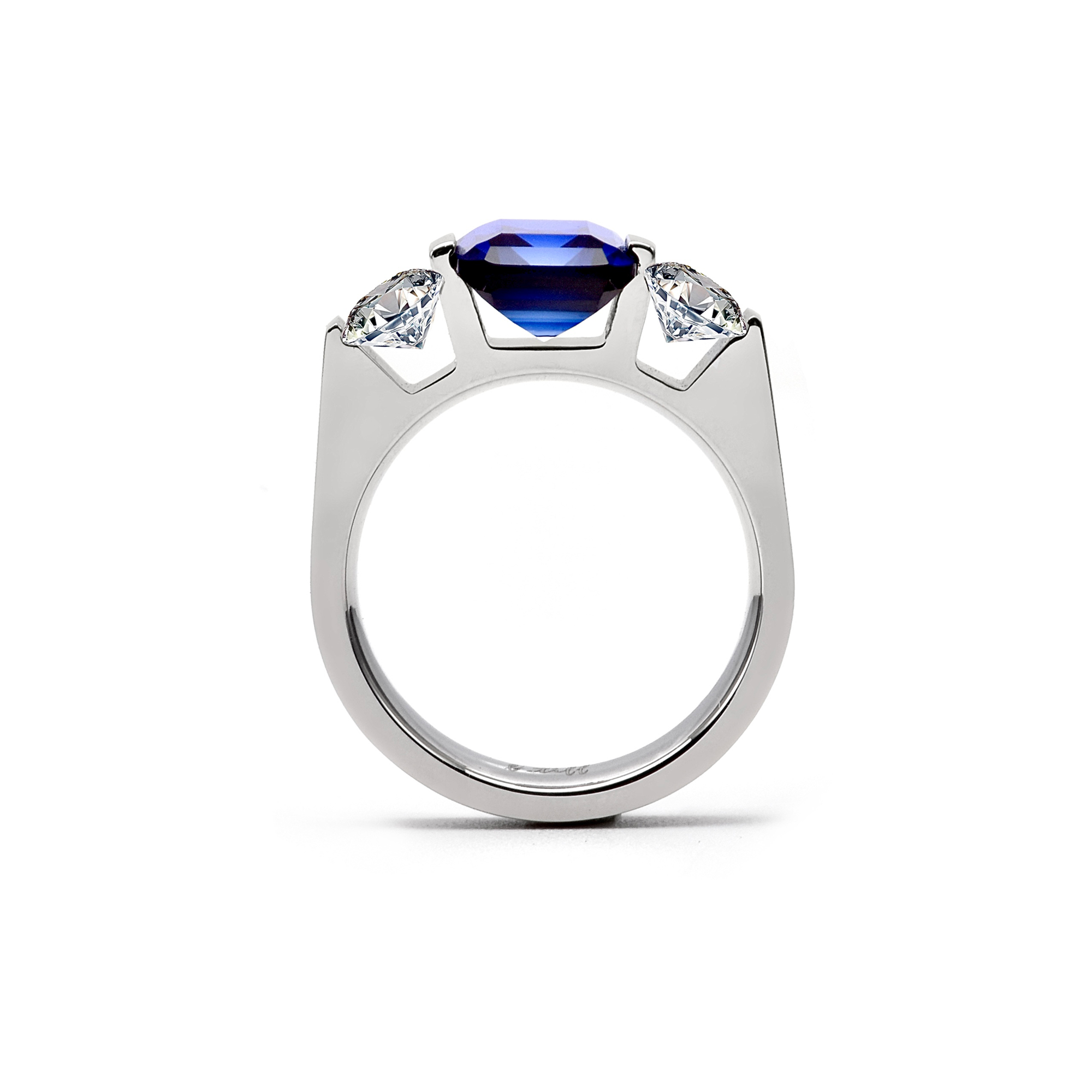 RG208BL B.Tiff 3-Stone 3 ct Blue Emerald Cut Engagement Ring by B.Tiff New York
