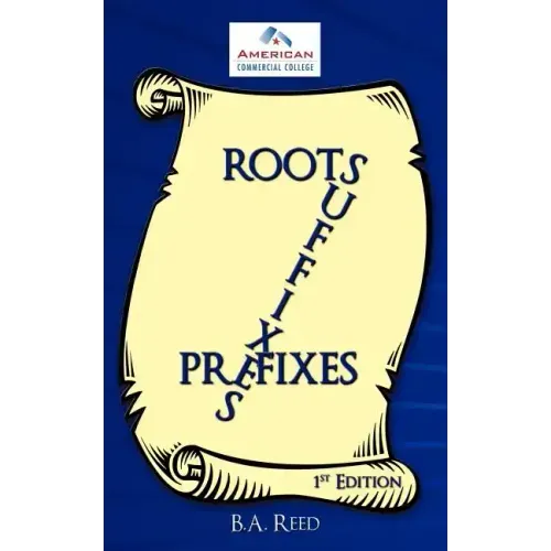 This book presents a compilation of terms frequently encountered in the vocabulary of medicine. You will find a dash (-) appended to indicate that this word is incomplete, and there is something which comes before the medical term or behind the medical term. The terms, in this work, provide a map for students to begin to understand a complex language as the various component of the words (roots, suffixes, prefixes) are strung together to form a complete word.. It is then that the student began to get a picture of the meaning of the word as the components began to fit together. Roots, Suffixes, Prefixes is provided as a reference for our Anatomy and Physiology students and Medical Assistants. It is as indispensable for nursing students and other students in the medical field. The book is compiled alphabetically for ease of access. Hats off to all students, especially the Medical Assistant students of American Commercial College, San Angelo, Texas. We appreciate hearing from you, as well as others, concerning your opinion regarding use of this book - suggestions and constructive criticisms needed. It is your feedback that provides the basic of each revision. Remember you are the reason why this work is effected, and it is you that underwrites future editions.