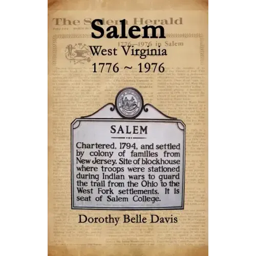 SALEM, WEST VIRGINIA A small town with a big spirit. Every town has its stories, and Salem is no exception. When Salem was still in the state of Virginia, Preston Randolph, a renowned educator and pillar of the community, campaigned for Abraham Lincoln. Within these pages you will learn about the person who manufactured Salem's first electricity; the first man to sell oil that was produced and marketed in Harrison County; where in 1976 a well still existed that had been used to supply water for the stockade, where the brewery was located and Salem's great fire of 1901. This collection of historical stories of life in Salem, West Virginia---and many more---paint a vivid picture of this small town and the people who made it prosper for over 200 years. Written by Dorothy Belle Davis, a locally well-known educator, author, and newspaper columnist, these stories have been lovingly preserved and reproduced for your enjoyment. Mrs. Davis is the author of HISTORY OF HARRISON COUNTY and JOHN GEORGE JACKSON.