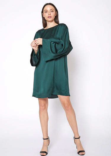 Women's batwing sleeve satin shine tunic dress with a cross back accent.