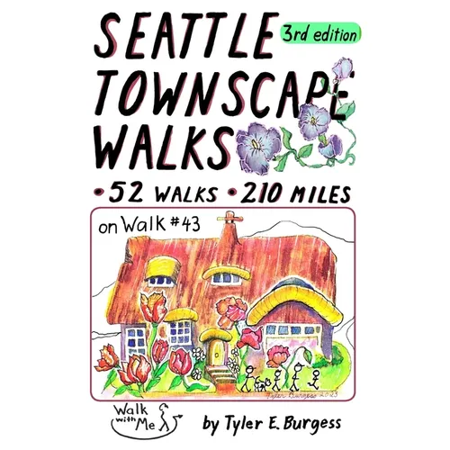 Walks in Seattle for joy, coffee, vistas, pizza, gardens, and even exercise. Unique routes for grand vistas, over the water, and spring cherry tree blossoms. Walks for dates, kids, holidays, and remembrances. Easy to follow directions and maps. A totally hand drawn book with fun illustrations by the author, who walked every step.