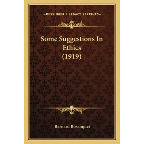""Some Suggestions in Ethics"" is a philosophical work written by Bernard Bosanquet and originally published in 1919. The book presents a series of essays on various ethical topics, including the nature of morality, the relationship between ethics and religion, and the role of reason in ethical decision-making. Bosanquet's approach to ethics is grounded in his belief that ethical principles must be based on a thorough understanding of human nature and the social context in which individuals live. He argues that ethical theories must be practical and applicable to real-life situations, rather than abstract and detached from the concerns of everyday life. Bosanquet's writing is clear and accessible, making this book an excellent introduction to his ethical philosophy.This scarce antiquarian book is a facsimile reprint of the old original and may contain some imperfections such as library marks and notations. Because we believe this work is culturally important, we have made it available as part of our commitment for protecting, preserving, and promoting the world's literature in affordable, high quality, modern editions, that are true to their original work.