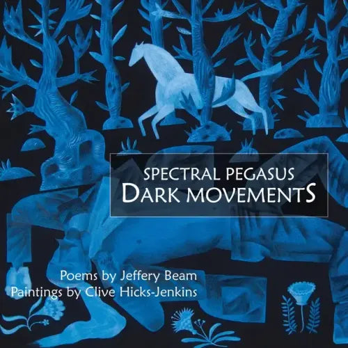 An intense "marvelous and fateful game," Spectral Pegasus / Dark Movements brings to the page a six-month blogosphere collaboration between Welsh painter Clive Hicks-Jenkins and American poet Jeffery Beam, depicting a Hero's journey through death, resurrection, psychological and spiritual trials, and revelations into redemptive vision. Originating loosely in an ancient Welsh folk tradition and the death of the painter's father, painter and poet marry their impressive powers of myth and dream into individual but sympathetically resonant designs--inward landscapes wrought startlingly real--at turns plain and flamboyant, poignant and joyful. "The grace of these paintings and poems is in their wildness," fashioned ultimately by Hicks-Jenkins' and Beam's compassionate confrontation with dark forces, reviving forgotten knowing and healing powers, as pilgrim/hero meets Horse/Man, thus "patching up some almighty fear in the fabric of heaven" and the searching self. Features twenty-one full color illustrations, sixteen poems, and illuminating essays by Sarah Parvin, Mary-Ann Constantine, and Claire Pickard. Book design by J.C. Mlozanowski.