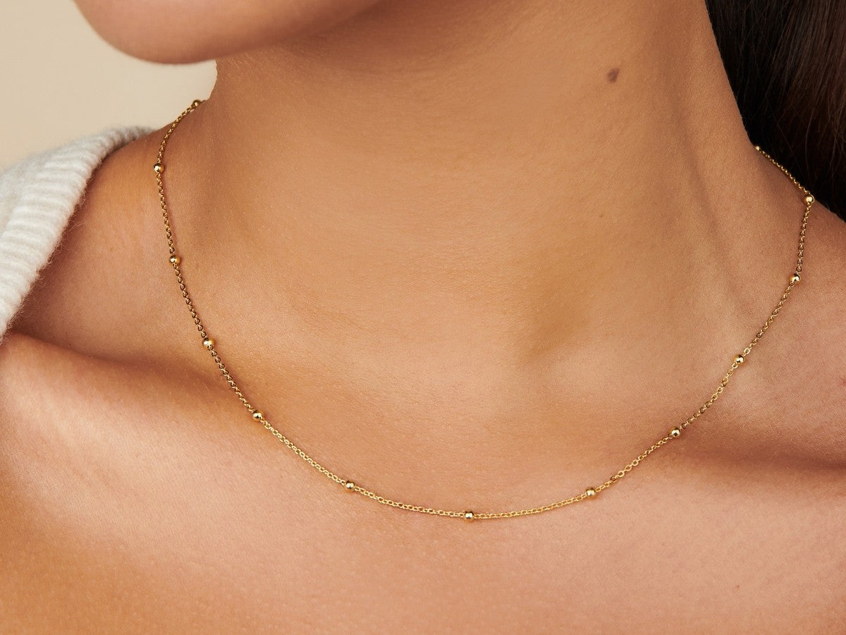 Perfect on its own or paired with other necklaces in a chic stack, this lovely bead station chain is a wonderful addition to any everyday look.