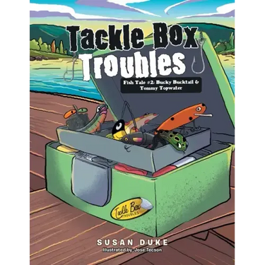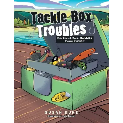 Another fishing season for the lures in Tackle Box Troubles has finally arrived! Bucky Bucktail, Francis Frog, Sammy Spinner, and Suki Suick are ready for amazing fishing adventures on the large lake. This summer, Musky Ike, Tommy Topwater, and Big Jake join in the fishing fun! Which lure is going to catch the longest fish from the deep, murky, cold water? Trouble starts for the fishing lures when Tommy Topwater, an experienced chopper lure, is cast too high over the water and becomes tangled up in power lines. The fisherman cuts the fishing line away from the reel, leaving Tommy Topwater hanging high above the water. Realizing every cast from the fishing rod puts the lures in serious trouble, Sammy believes fishing is too dangerous a sport for him. By sharing two stories about Bucky Bucktail and the trouble he survived during his time on the boat, the other fishing lures try to reassure Sammy that Tommy can indeed be rescued from this trouble. Will Tommy Topwater be rescued and returned to the tackle box this summer? Or will he be stuck spending a frigid winter outdoors in the Northwoods?