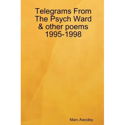 A reprint of Vermont poet Marc Awodey's first poetry collection, "Telegrams from the Psych Ward and other poems." Critical reviews of the earlier edition included; "...a spiritual cousin to Rimbaud's A Season in Hell." -- Joseph Lisowski Ph.D., New Works Review "Awodey's poetric vision is meditative, quietly troubled, dense with suggestion." -- Jim Esch, Turk's Head Review "Awodey's poetry invokes everything from medieval lyric to Celan's dark moods to Lorca's deathward-leaning duende to Ginsberg's howl." -- Samantha Hunt, Seven Days "This book is a dance, a song, a virtuoso performance." -- Thomas Fortenberry, Mindfire Poetry Journal "astounding stuff" -- Trevor Reeves, Southern Ocean Review