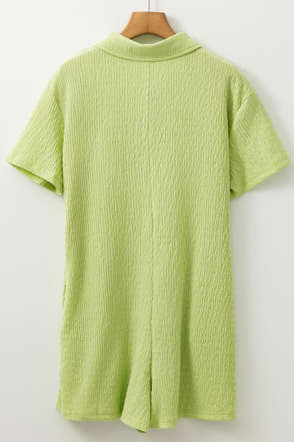Textured Short Sleeve Patched Pocket Buttoned Romper