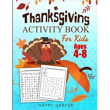 Get ready for THANKSGIVING with this fun coloring and activity book by Happy Harper