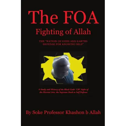 The FOA the Fighting of Allah. the Nation of Gods and Earths "Defense for Knowing Self" is the first of its kind, a martial arts book mixed with the concepts of the 5%% lessons of the 120 (Nation of Islam canon). From a religious point of view, it resembles the Buddhist Shaolin Monks of ancient China (who practiced Kung Fu while being versed in Buddhist principals). Mr. Allah explains the martial arts with the 120 lessons and has broken down each degree into a fighting form. His "Defense for Self" is the "knowledge of self" and thus martial arts becomes more than just physical movements, but the mental strategy's of awareness and how you conduct your-self wisely in combat. The Author believes the reader will enjoy the book and learn valuable teachings whether they trained in any forms of the martial arts or have any religious ways of life or not. Therefore the FOA is the Supreme book on mental and physical development and has been devised effectively for the advanced or novice practitioner.