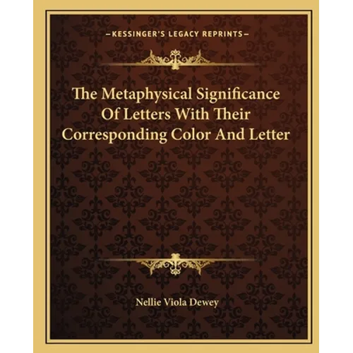 The book ""The Metaphysical Significance Of Letters With Their Corresponding Color And Letter"" by Nellie Viola Dewey explores the spiritual and metaphysical meanings behind the letters of the alphabet and their corresponding colors. The author delves into the ancient wisdom of numerology and how it relates to the symbolism of letters and colors. The book is divided into sections for each letter of the alphabet and includes information on the spiritual qualities and attributes associated with each letter. The author also provides guidance on how to use this information for personal growth and spiritual development. This book is a valuable resource for anyone interested in exploring the deeper meanings and symbolism behind language and communication.THIS 28 PAGE ARTICLE WAS EXTRACTED FROM THE BOOK: Psychology of Your Name, by Nellie Viola Dewey. To purchase the entire book, please order ISBN 076613217X.This scarce antiquarian book is a facsimile reprint of the old original and may contain some imperfections such as library marks and notations. Because we believe this work is culturally important, we have made it available as part of our commitment for protecting, preserving, and promoting the world's literature in affordable, high quality, modern editions, that are true to their original work.