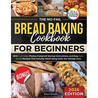The No-Fail Bread Baking Cookbook for Beginners was created for real home bakers, not professionals. You'll learn the essential foundations-how dough behaves, why each step matters, and how to make bread work for you. Each recipe is clearly written, tested, and supported by full-color photos, so you can recognize the look and feel of every stage.