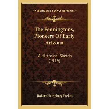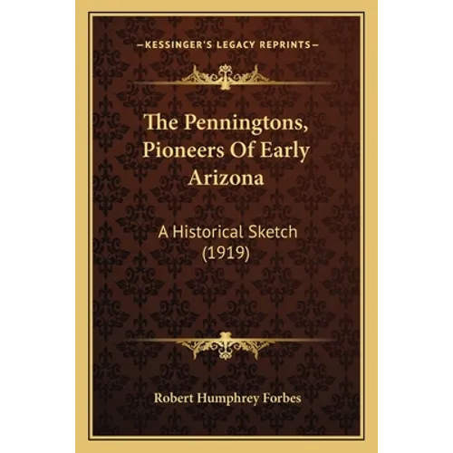 The Penningtons, Pioneers of Early Arizona: A Historical Sketch is a book written by Robert Humphrey Forbes and published in 1919. The book provides a detailed account of the Pennington family, who were among the earliest settlers in Arizona. The author traces the family's history from their arrival in the territory in the mid-1800s to their contributions to the development of the state. The book covers a range of topics, including the family's experiences with mining, ranching, and politics, as well as their interactions with Native American tribes and other early settlers. The author also includes photographs and illustrations to help bring the story to life. Overall, The Penningtons, Pioneers of Early Arizona offers a fascinating glimpse into the history of Arizona and the role that one family played in shaping it.This scarce antiquarian book is a facsimile reprint of the old original and may contain some imperfections such as library marks and notations. Because we believe this work is culturally important, we have made it available as part of our commitment for protecting, preserving, and promoting the world's literature in affordable, high quality, modern editions, that are true to their original work.