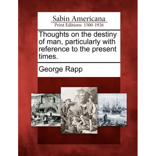 Title: Thoughts on the destiny of man, particularly with reference to the present times.Author: George RappPublisher: Gale, Sabin Americana Description: Based on Joseph Sabin's famed bibliography, Bibliotheca Americana, Sabin Americana, 1500--1926 contains a collection of books, pamphlets, serials and other works about the Americas, from the time of their discovery to the early 1900s. Sabin Americana is rich in original accounts of discovery and exploration, pioneering and westward expansion, the U.S. Civil War and other military actions, Native Americans, slavery and abolition, religious history and more.Sabin Americana offers an up-close perspective on life in the western hemisphere, encompassing the arrival of the Europeans on the shores of North America in the late 15th century to the first decades of the 20th century. Covering a span of over 400 years in North, Central and South America as well as the Caribbean, this collection highlights the society, politics, religious beliefs, culture, contemporary opinions and momentous events of the time. It provides access to documents from an assortment of genres, sermons, political tracts, newspapers, books, pamphlets, maps, legislation, literature and more.Now for the first time, these high-quality digital scans of original works are available via print-on-demand, making them readily accessible to libraries, students, independent scholars, and readers of all ages.++++The below data was compiled from various identification fields in the bibliographic record of this title. This data is provided as an additional tool in helping to insure edition identification: ++++SourceLibrary: Huntington LibraryDocumentID: SABCP00650000CollectionID: CTRG10184432-BPublicationDate: 18240101SourceBibCitation: Selected Americana from Sabin's Dictionary of books relating to AmericaNotes: Translation of: Rapp, George. Gedanken uber die Bestimmung des Menschen, besonders in Hinsicht der gegenwartigen Zeit (Shoemaker 16443; First cent. of German lang. printing in the U.S., 2655) Johann Christoph Muller operated the Harmony Society Press at New Harmony, Ind., in 1824. "Manuscripts in the Harmony] Society archives reveal that printing of this title was not completed until 1825 and the title page was printed for the Society by Eichbaum and Johnston of Pittsburgh."--Byrd & Peckham.Collation: 2], 96 p.; 18 cm