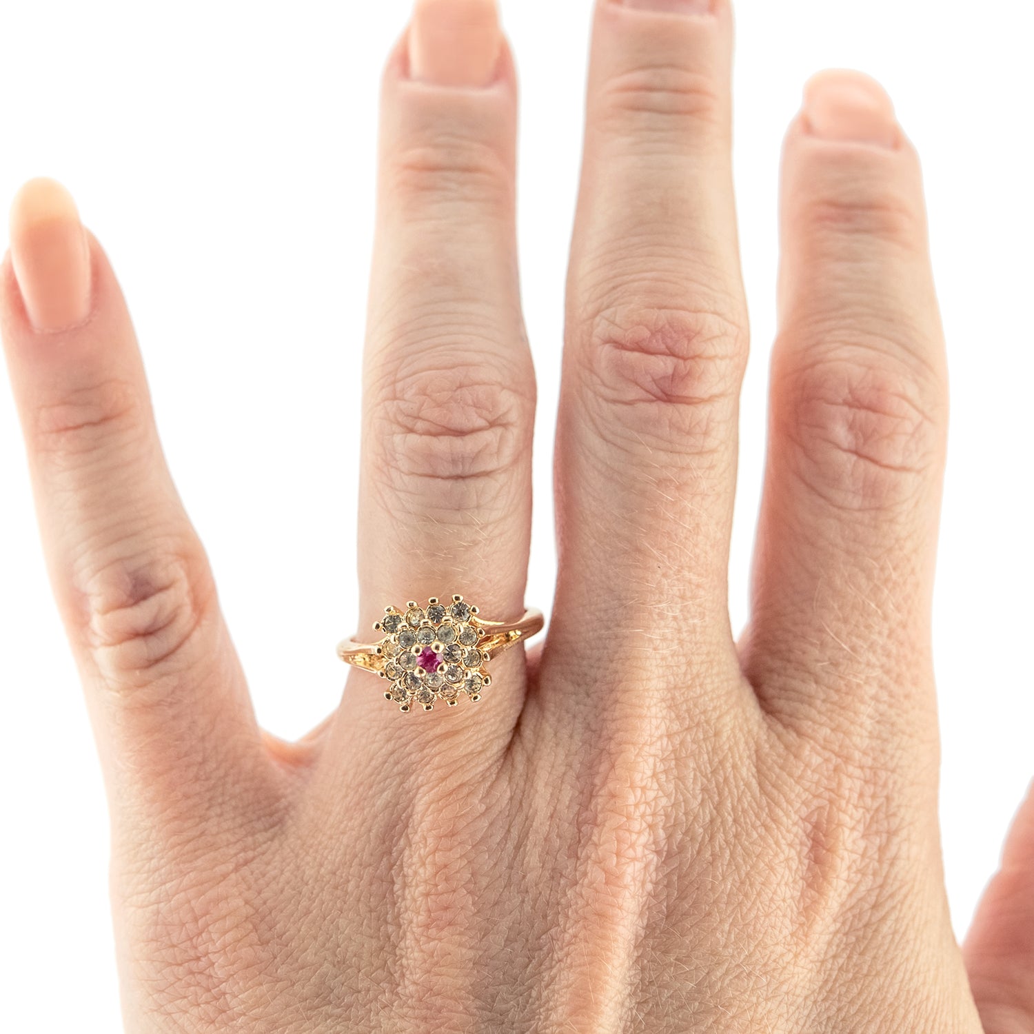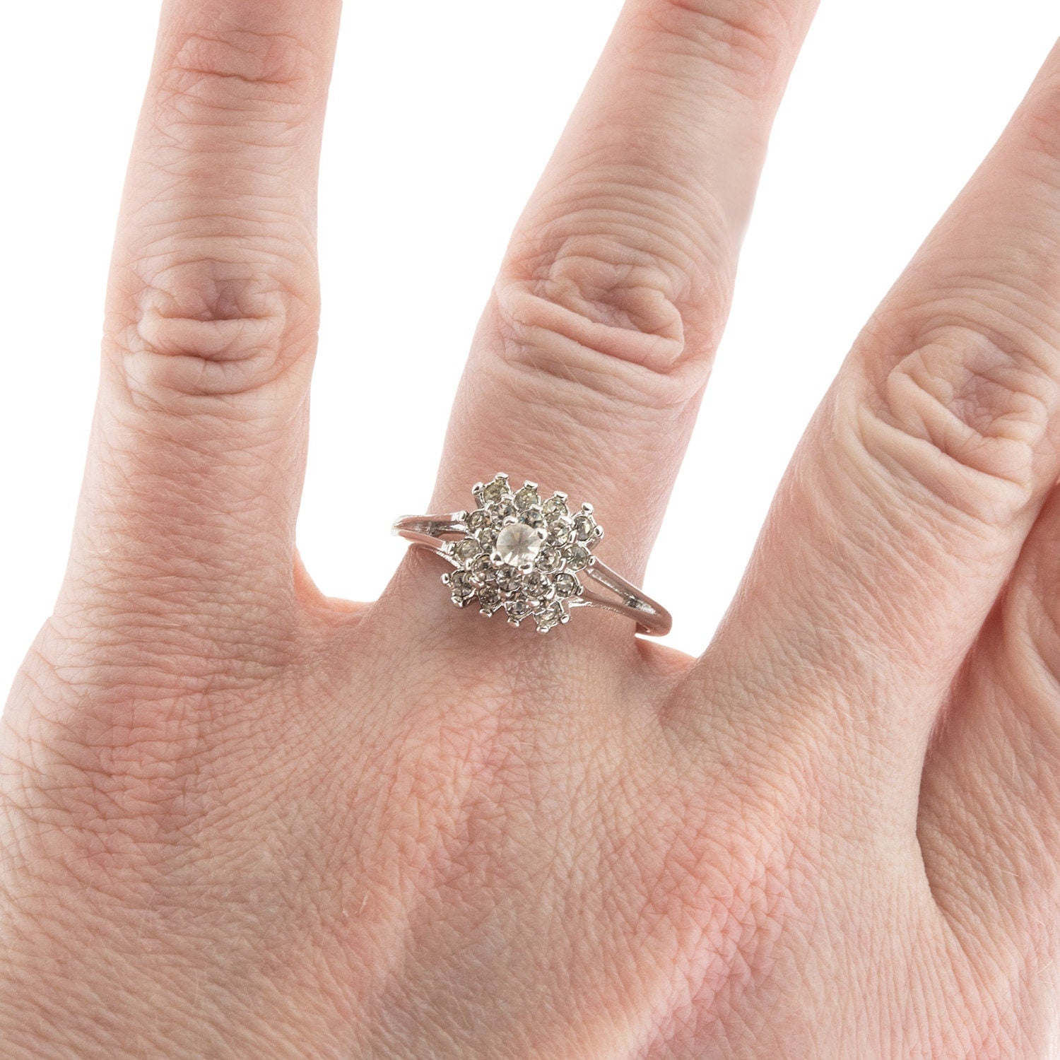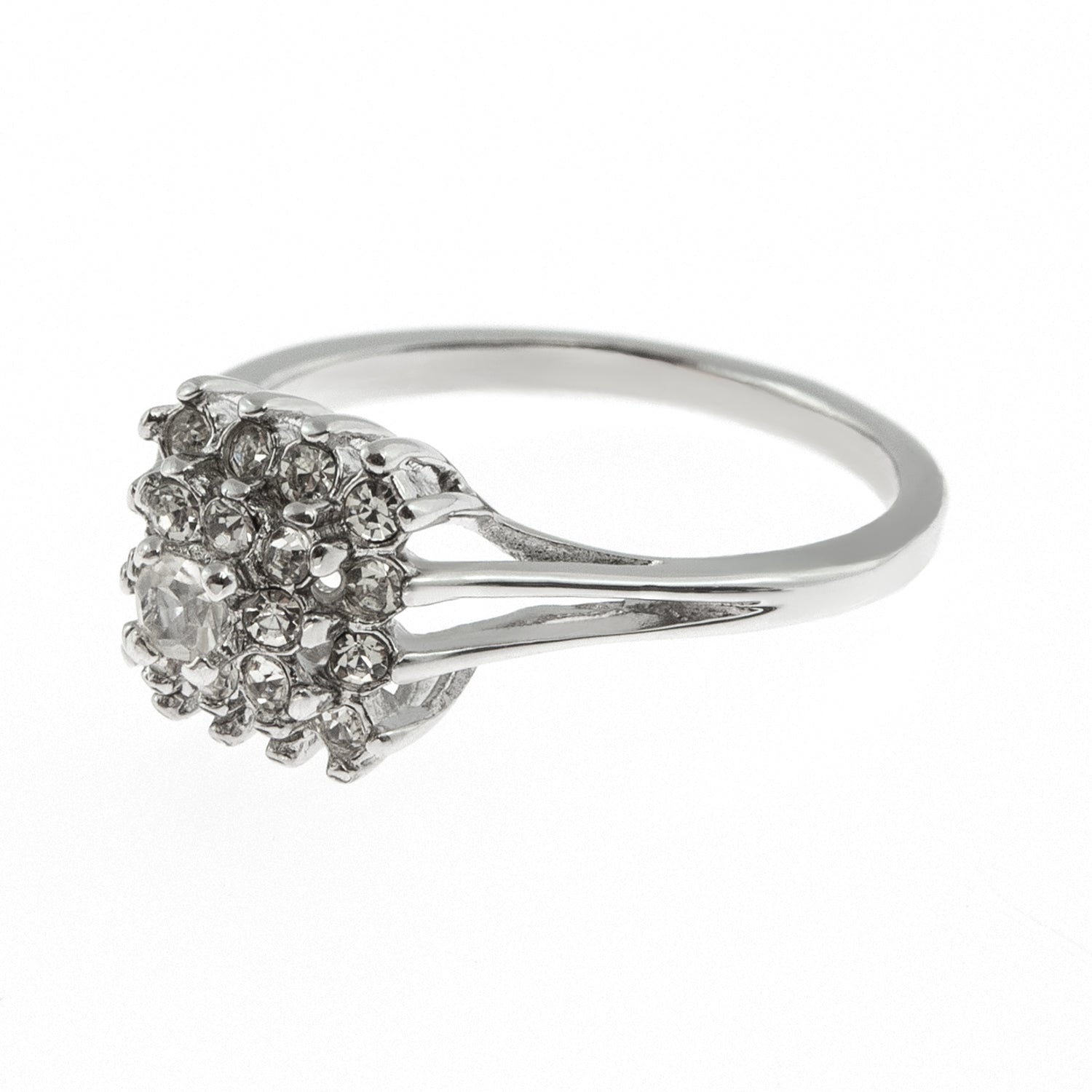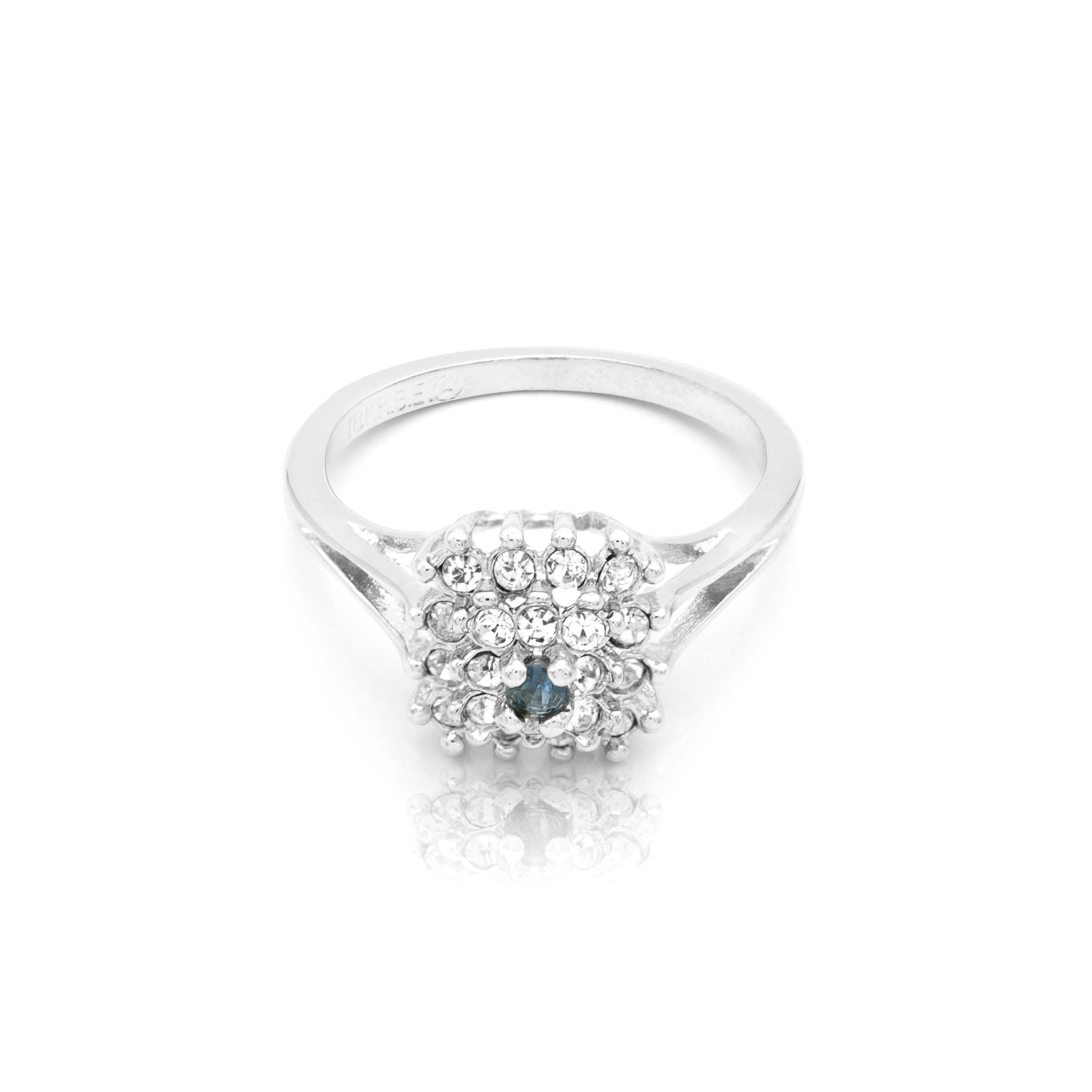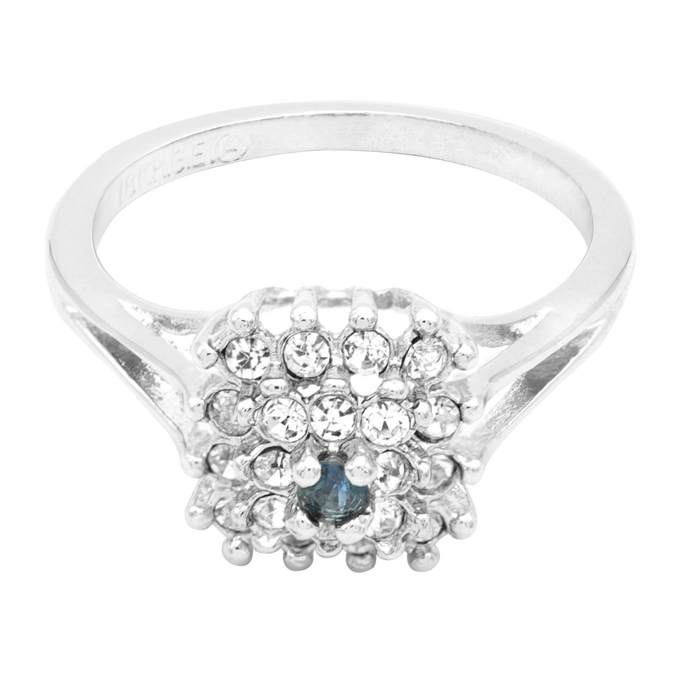 Vintage Clear Austrian Crystal Burst Ring 18kt White Gold Electroplated Made in USA by PVD Vintage Jewelry