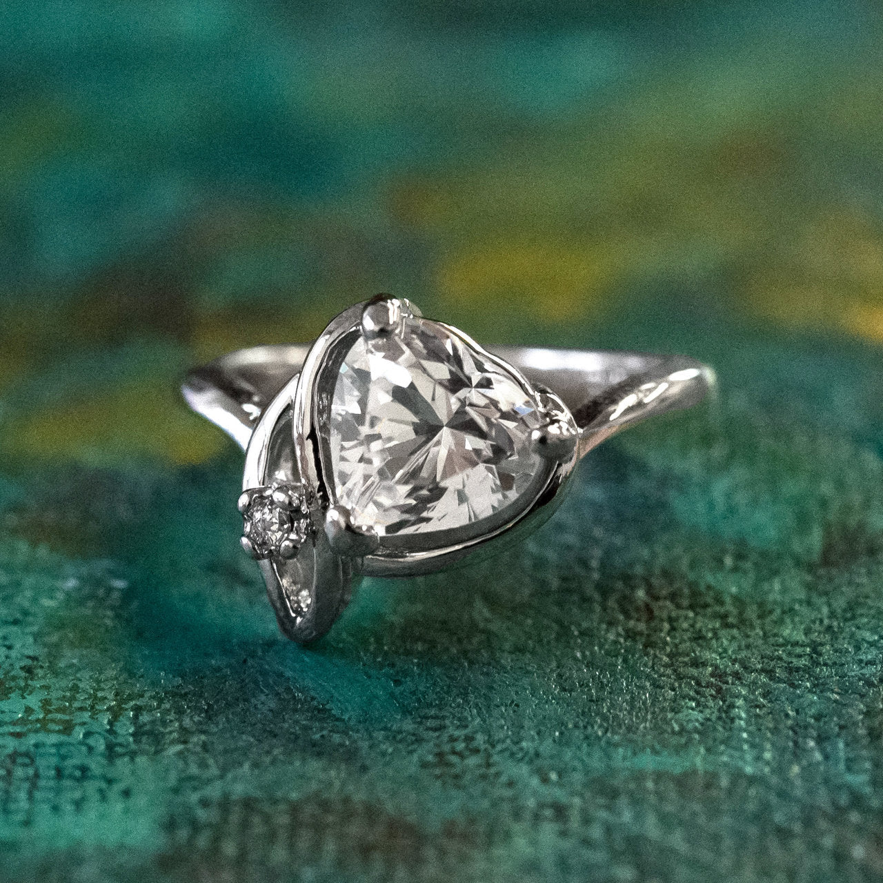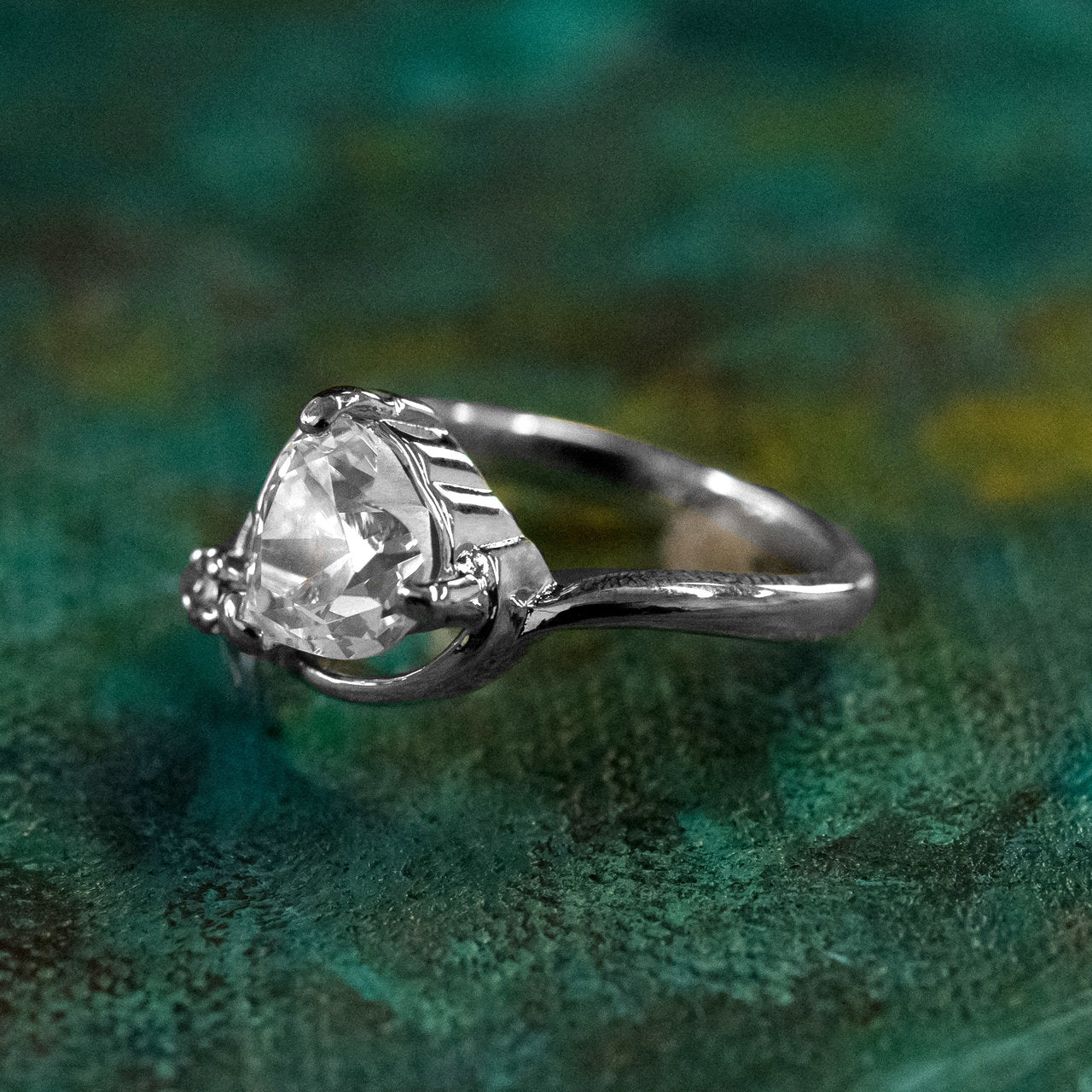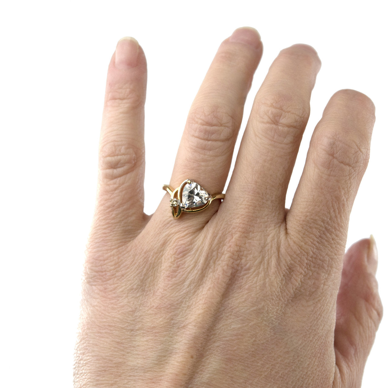 Vintage Jewelry Emerald Austrian Crystal Heart Ring 18k Yellow gold Electroplated Made in the USA by PVD Vintage Jewelry