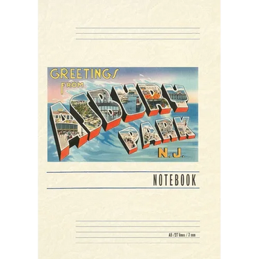 Introducing the Vintage Notebook: Greetings from Asbury Park, New Jersey, a delightful companion for all your writing endeavors. Featuring 150 lined pages, immerse yourself in the charm of a classic vintage travel postcard illustration adorning its cover. With its full-color decorative vintage art and versatile functionality, this notebook is an ideal companion for journaling, planning trips, tackling writing projects, organizing to-do lists, or simply capturing thoughts on any occasion. Found Image Press Vintage Journals take you on a nostalgic journey, featuring carefully curated vintage art that celebrates your favorite places, hobbies, and interests. The front cover showcases a captivating classic piece of art sourced from our vast collection of over 60,000 pictures, meticulously selected to transport you to a bygone era. Immerse yourself in the allure of the past and thoughtfully crafted to inspire and accompany your creative ventures. Details: A5 5.8 x 8.2 inches; 150 lined opaque pages; Soft matte finish; Soft matte finish