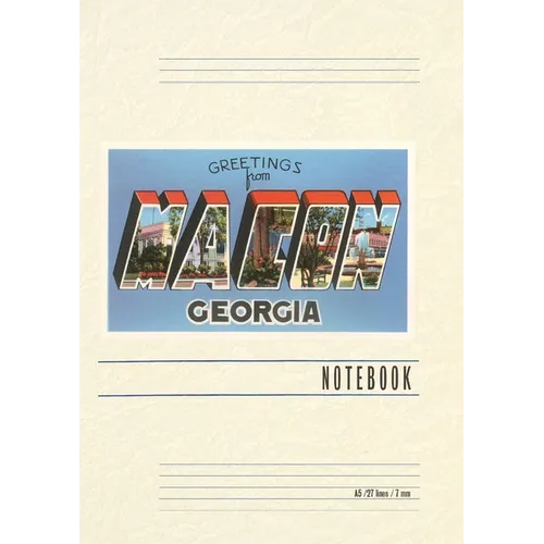 Introducing the Vintage Notebook: Greetings from Macon, a delightful companion for all your writing endeavors. Featuring 150 lined pages, immerse yourself in the charm of a classic vintage travel postcard illustration adorning its cover. With its full-color decorative vintage art and versatile functionality, this notebook is an ideal companion for journaling, planning trips, tackling writing projects, organizing to-do lists, or simply capturing thoughts on any occasion. Found Image Press Vintage Journals take you on a nostalgic journey, featuring carefully curated vintage art that celebrates your favorite places, hobbies, and interests. The front cover showcases a captivating classic piece of art sourced from our vast collection of over 60,000 pictures, meticulously selected to transport you to a bygone era. Immerse yourself in the allure of the past and thoughtfully crafted to inspire and accompany your creative ventures. Details: A5 5.8 x 8.2 inches; 150 lined opaque pages; Soft matte finish; Soft matte finish