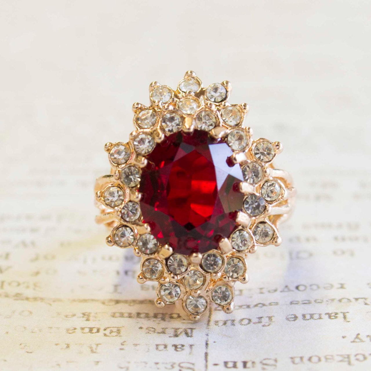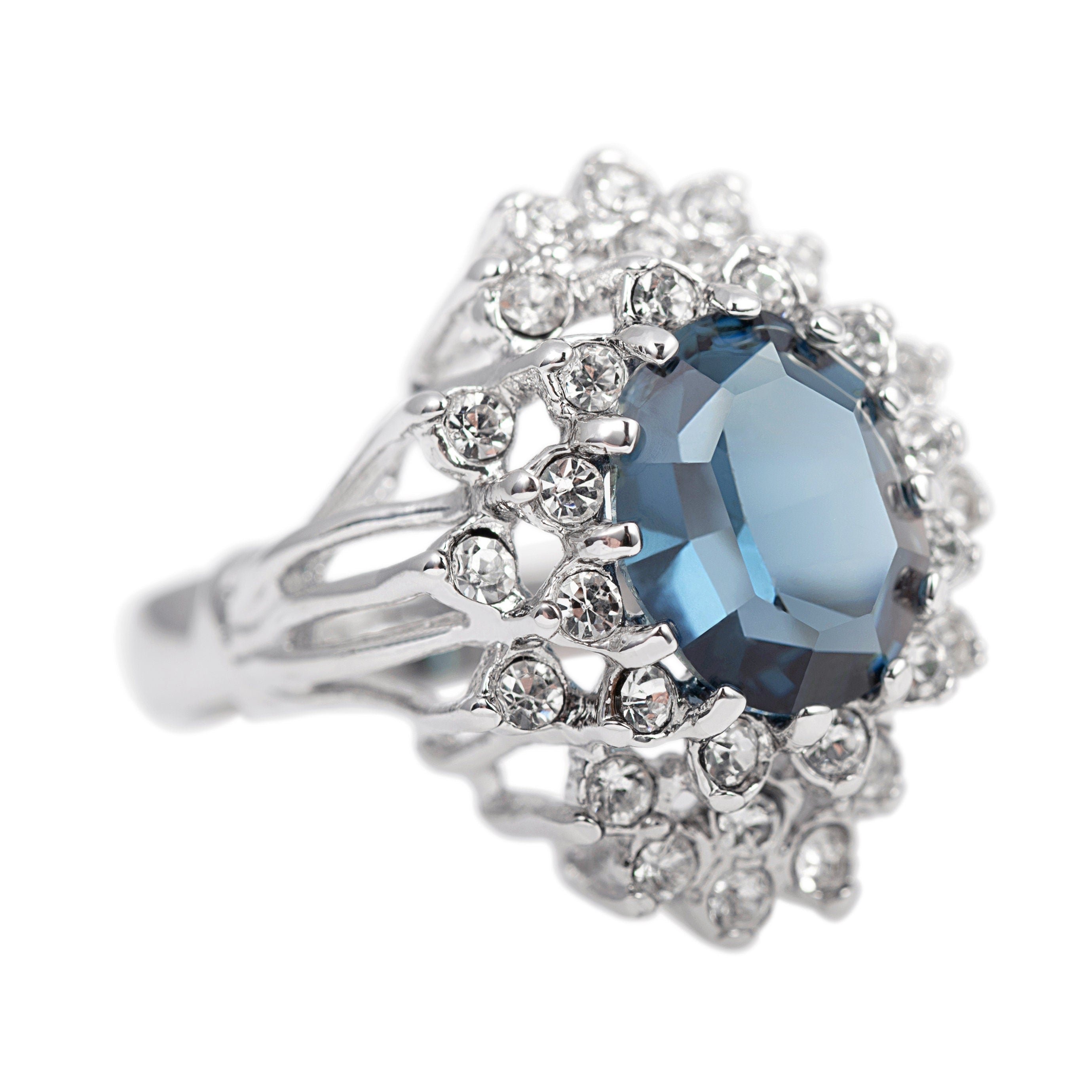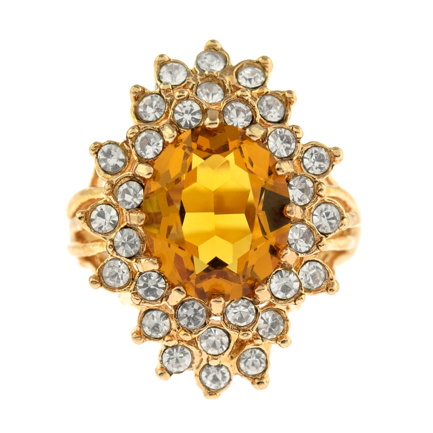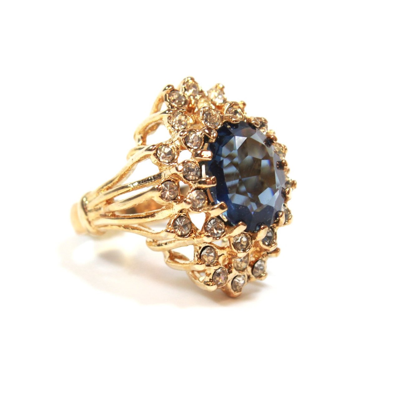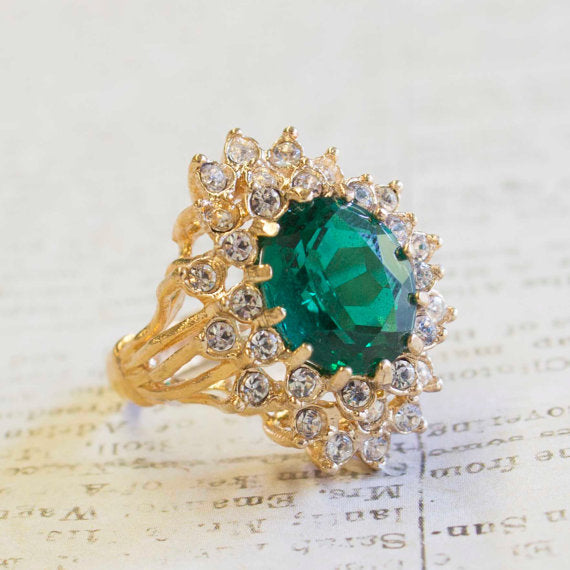 Vintage Women's Austrian Crystal Cocktail Ring 18k Gold Electroplated Birthstone Ring for Women by PVD Vintage Jewelry