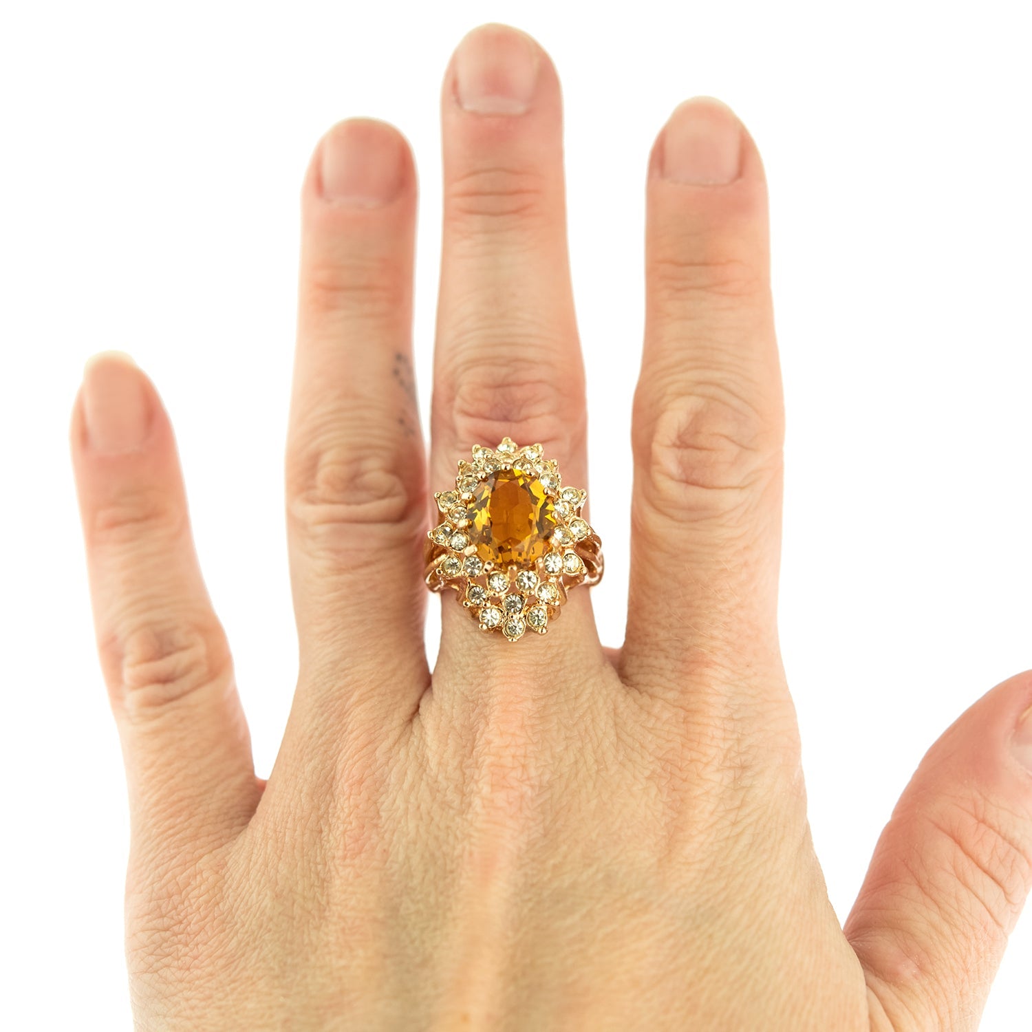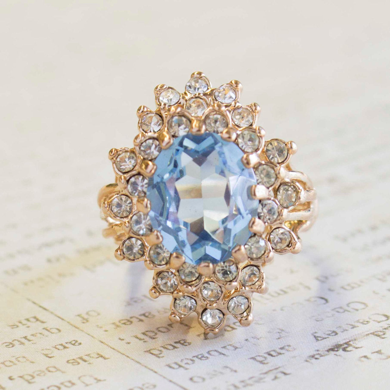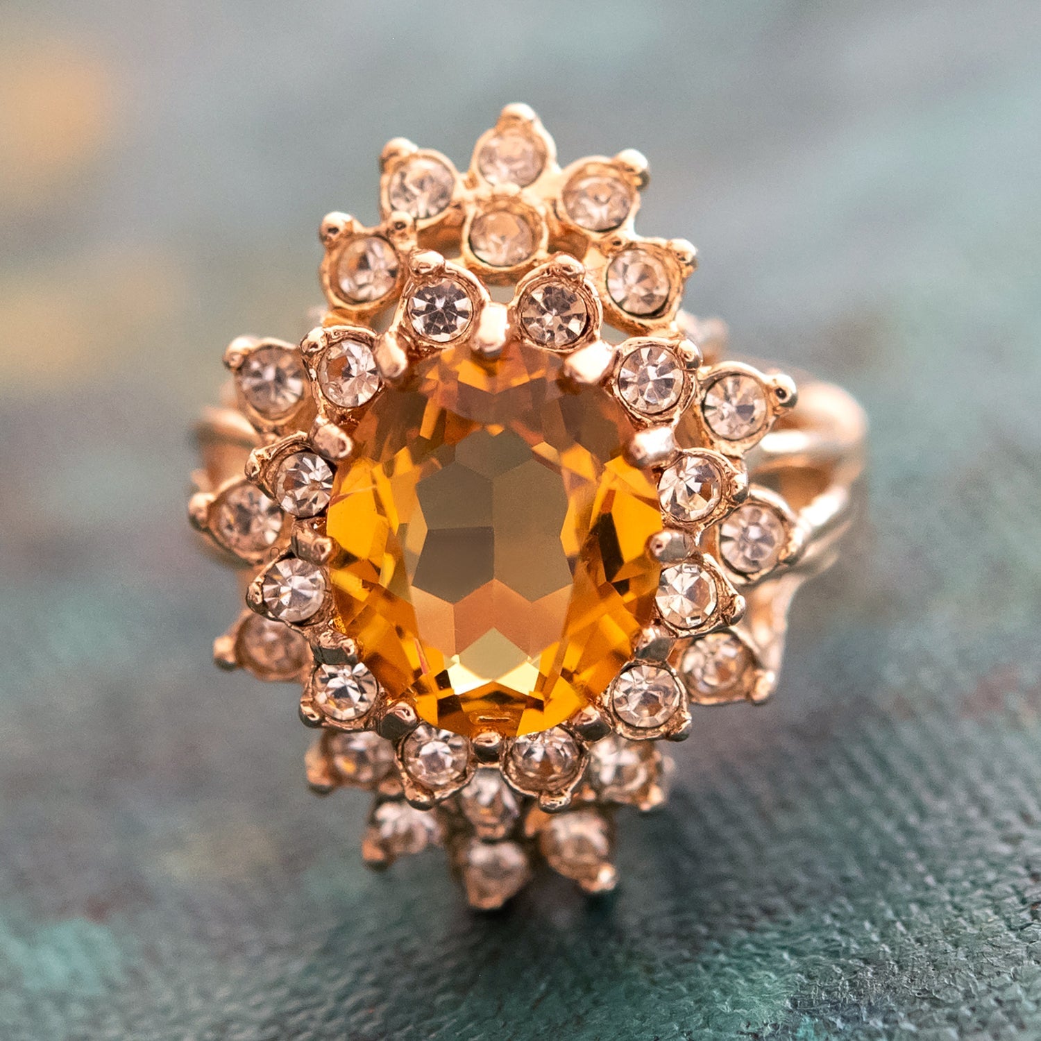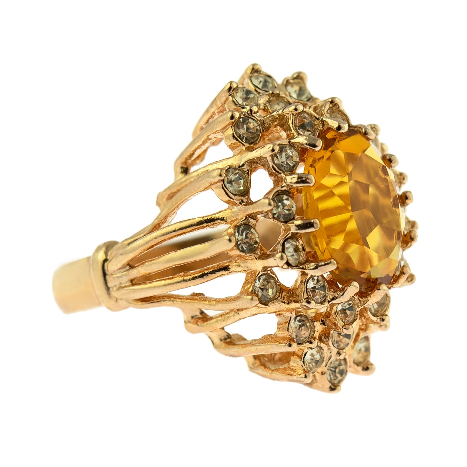 Vintage Women's Austrian Crystal Cocktail Ring 18k Gold Electroplated Birthstone Ring for Women by PVD Vintage Jewelry