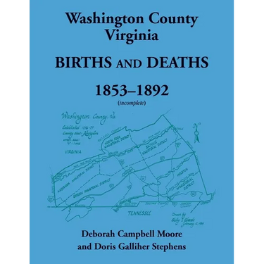 This publication provides records covering births and deaths in Washington County, Virginia during the years 1853 through 1892, arranged alphabetically by surname. The documents include details such as the parents' names, the father's occupation, the person who reported the birth, and the cause of death.