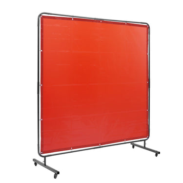 Welding Screen with Frame, 6' x 6' Welding Curtain Screen, Flame-Resistant Vinyl Welding Protection Screen on 4 Swivel Wheels (2 Lockable), Moveable & Professional for Workshop/Industrial, Red