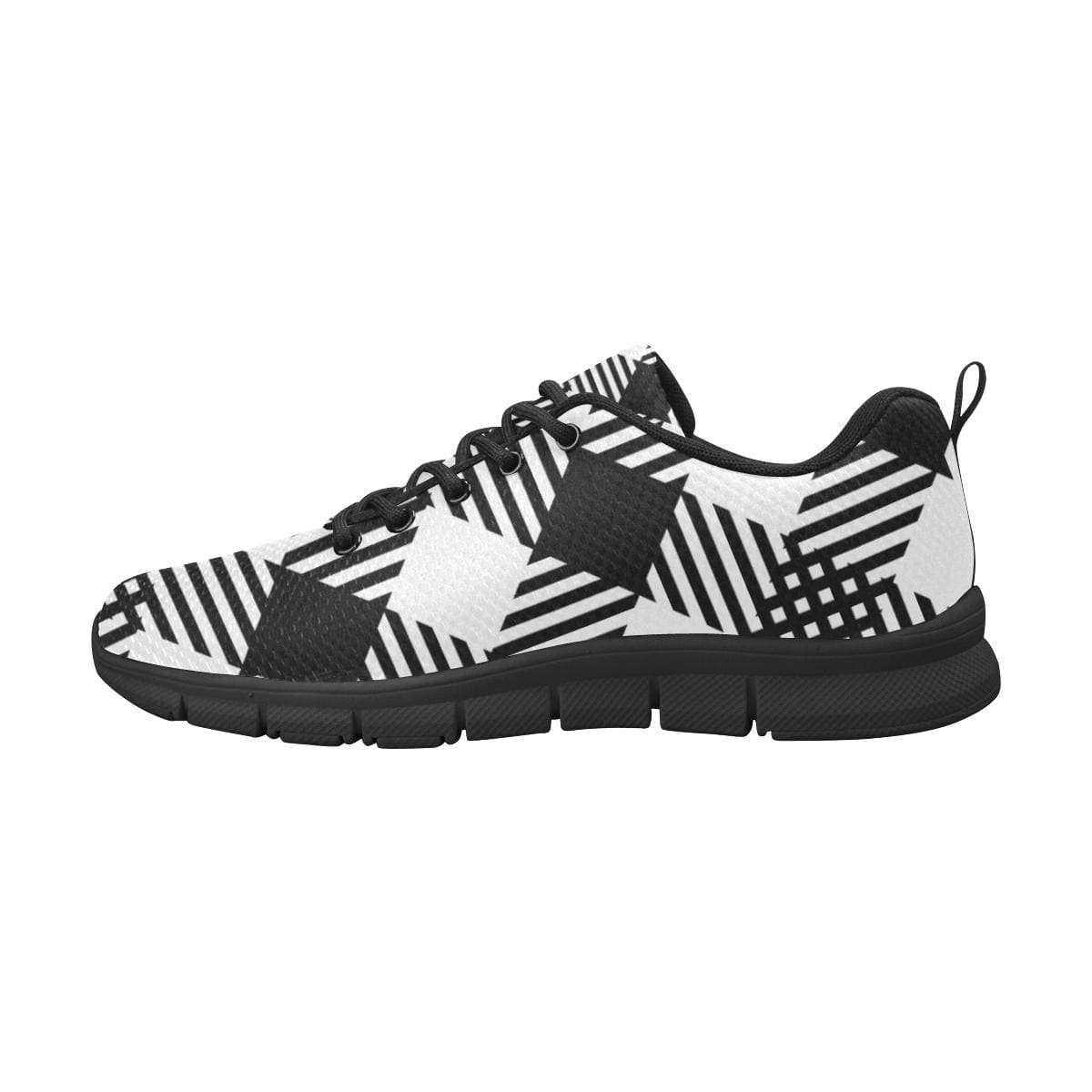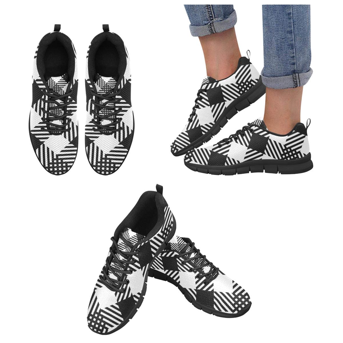 Womens Sneakers, Black and White Plaid Print Running Shoes by inQue.Style