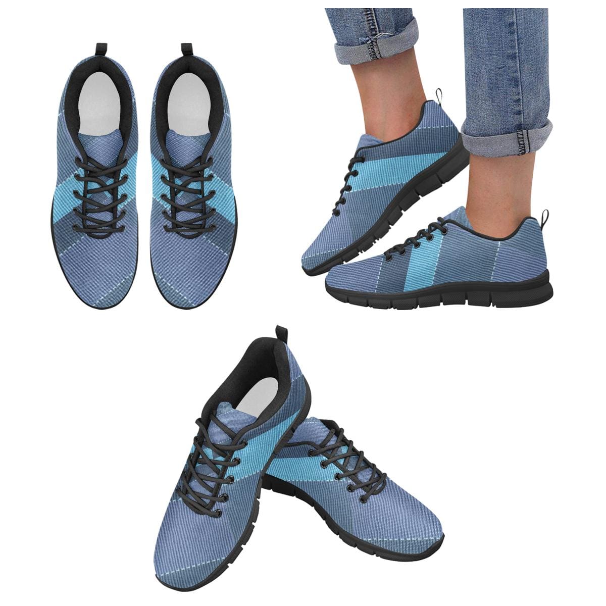 Womens Sneakers, Denim Blue Illustration Running Shoes by inQue.Style